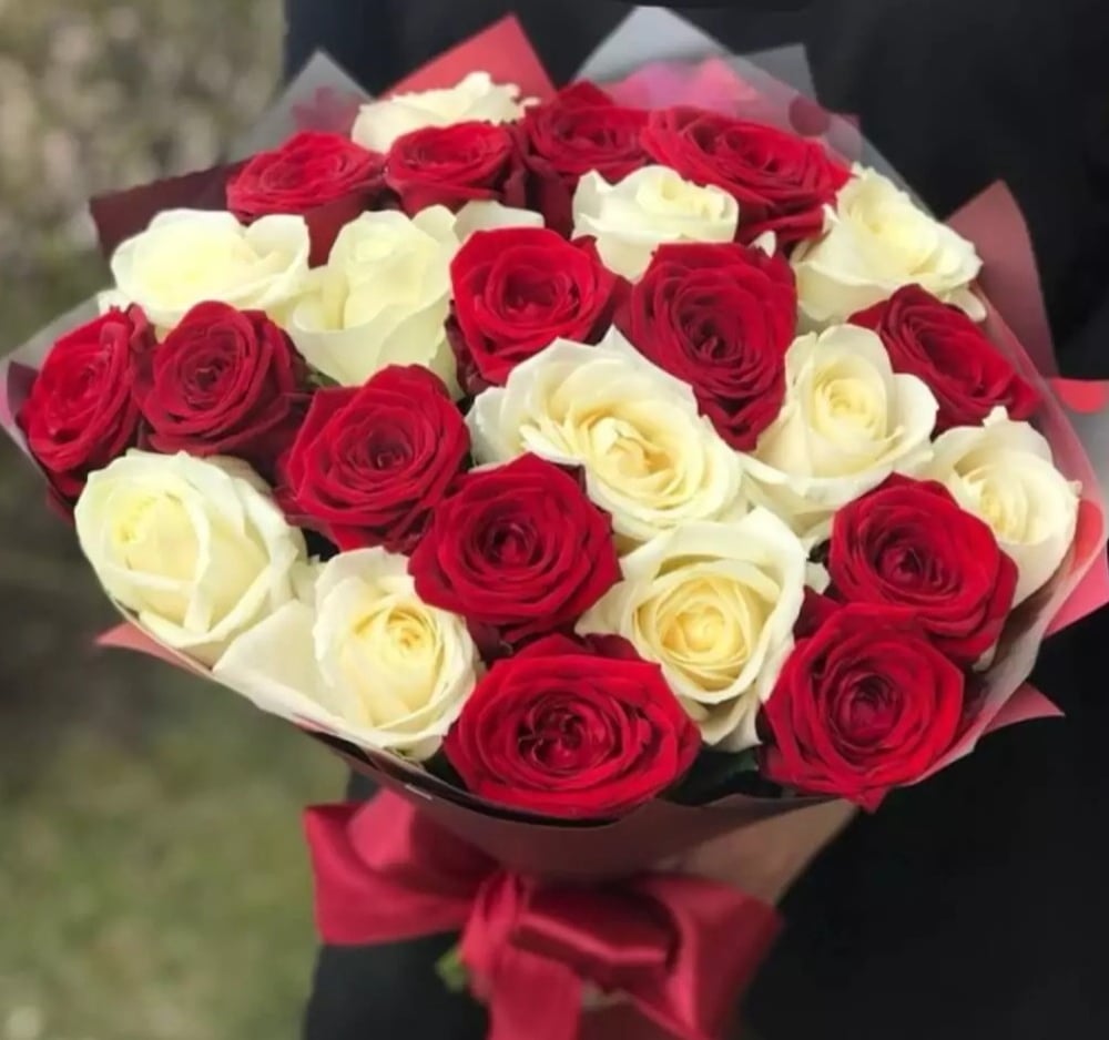 Bouquet di 24 rose Bouquet di rose rosse e bianche con bellissimi fiori freschi.