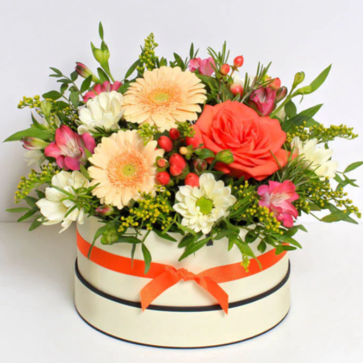 La nostra scatola di cappelli Brandy Snap presenta i migliori doni della natura con colori autunnali vivaci. Questo arrangiamento è il centro perfetto per aggiungere un delizioso tocco floreale al tu…