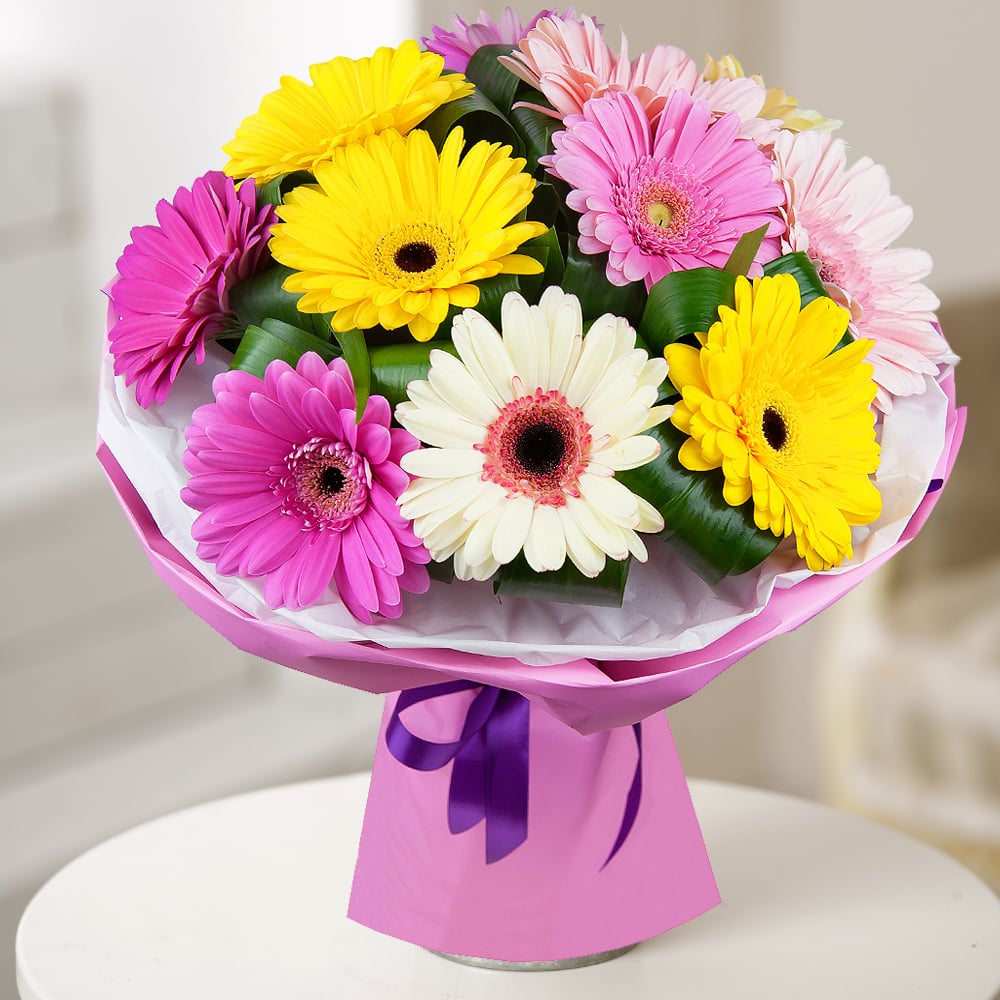 Il bouquet "Gerbere Allegre" è un regalo brillante e gioioso che regalerà al destinatario una carica di positività e buon umore. Il bouquet "Gerbere Allegre" è composto da 11 gerbere vivaci e dal ...