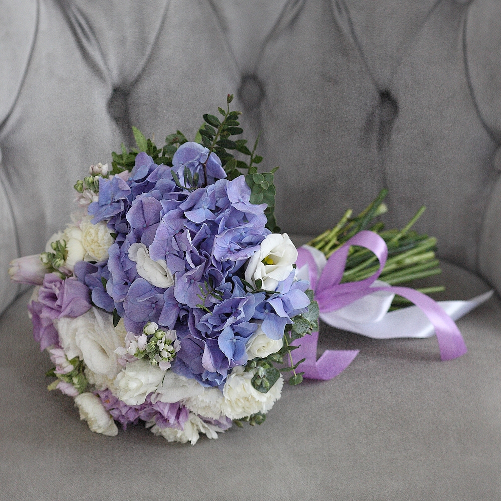 Il bouquet "Glassa" è una vera e propria opera d'arte, creata con i fiori più raffinati. Combina armoniosamente ortensie, matthiole, garofani frondosi, eustomi, pistacchi ed eucalipto, creando un'atm…