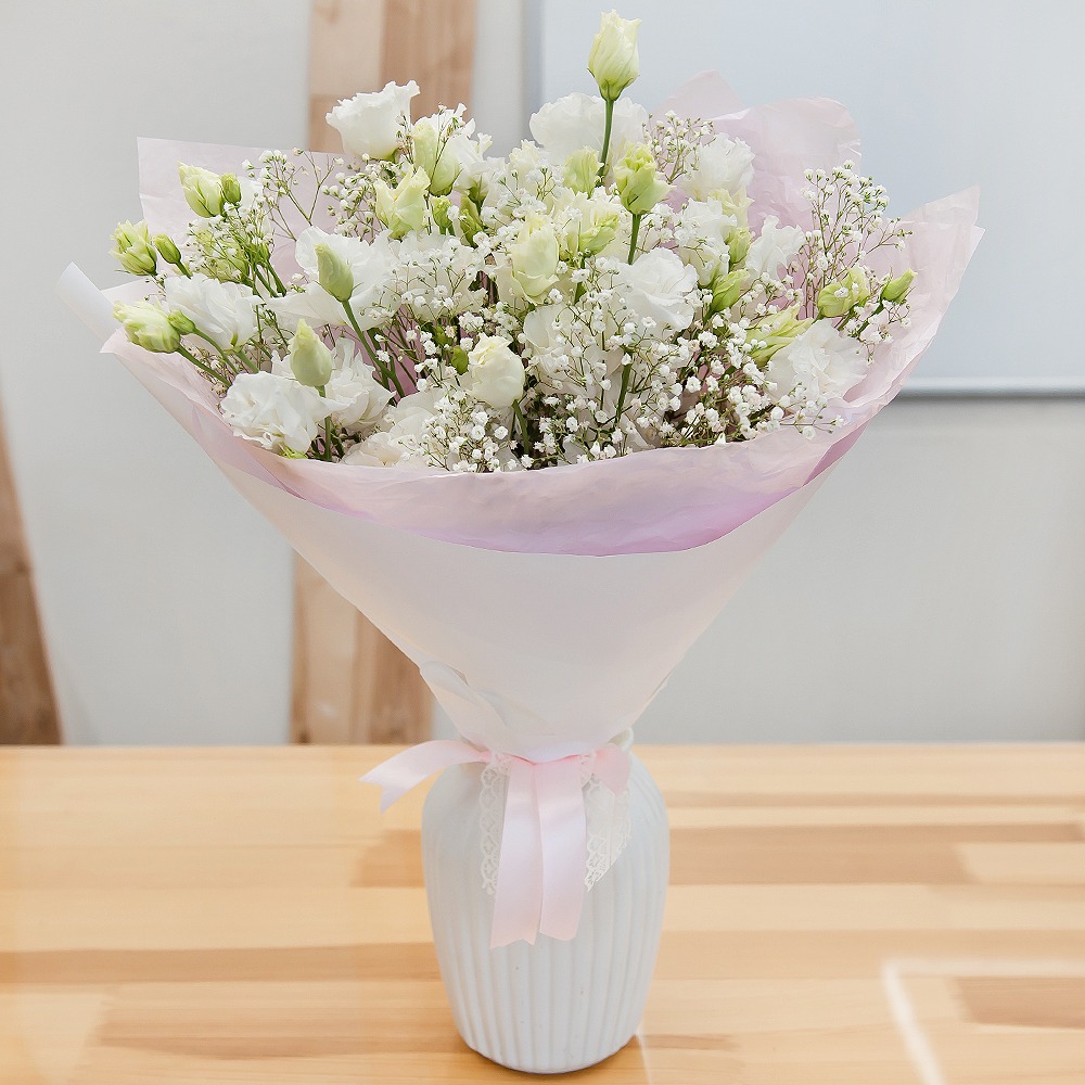 Il nostro bouquet evoca l'incantevole fascino della mitologia greca antica. Questo bouquet con stupendi lisianthus e gypsophila sussurra storie delle nove muse, dee dell'ispirazione. Bellamente confe…