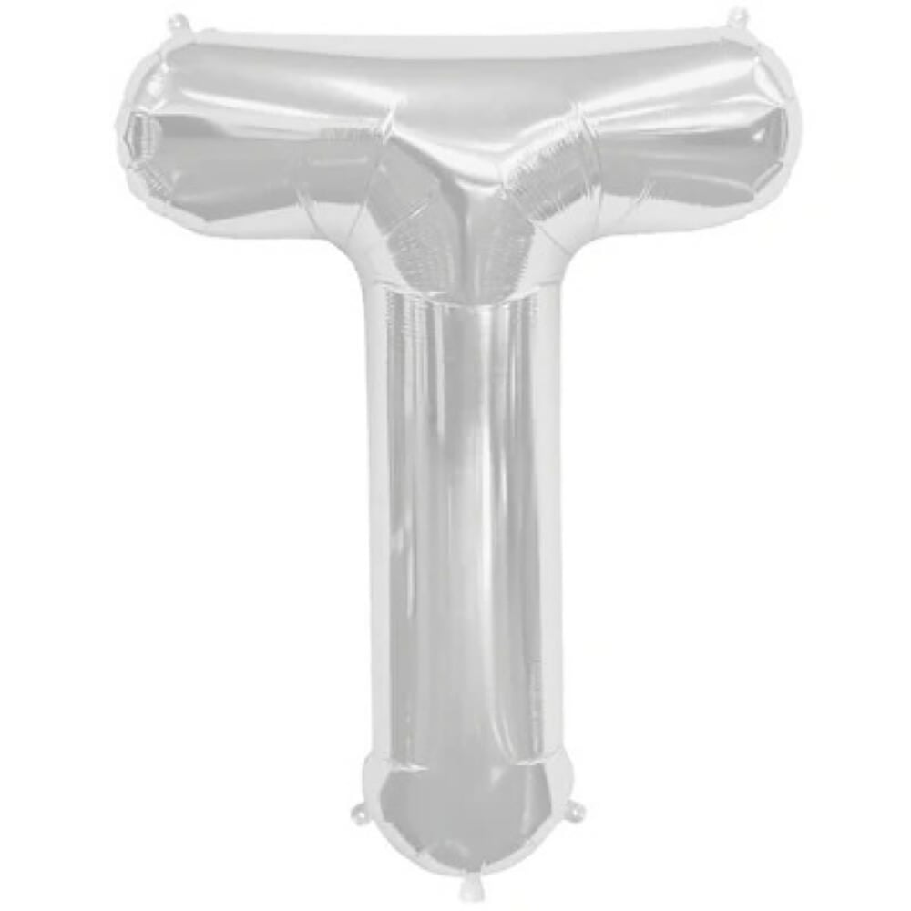 Palloncino in foil argentato a forma della lettera T
