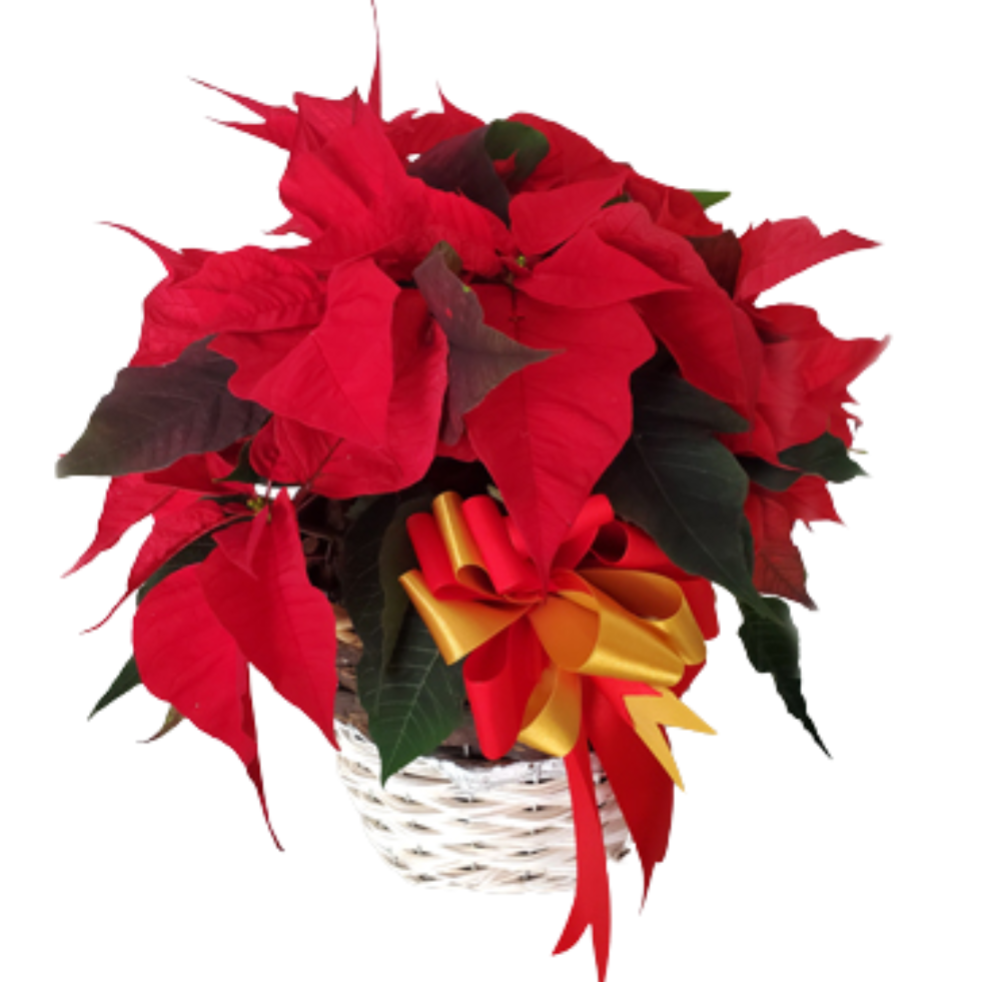 2 piante di Poinsettia Cesto in salice bianco Fiocco in nastro rosso e giallo