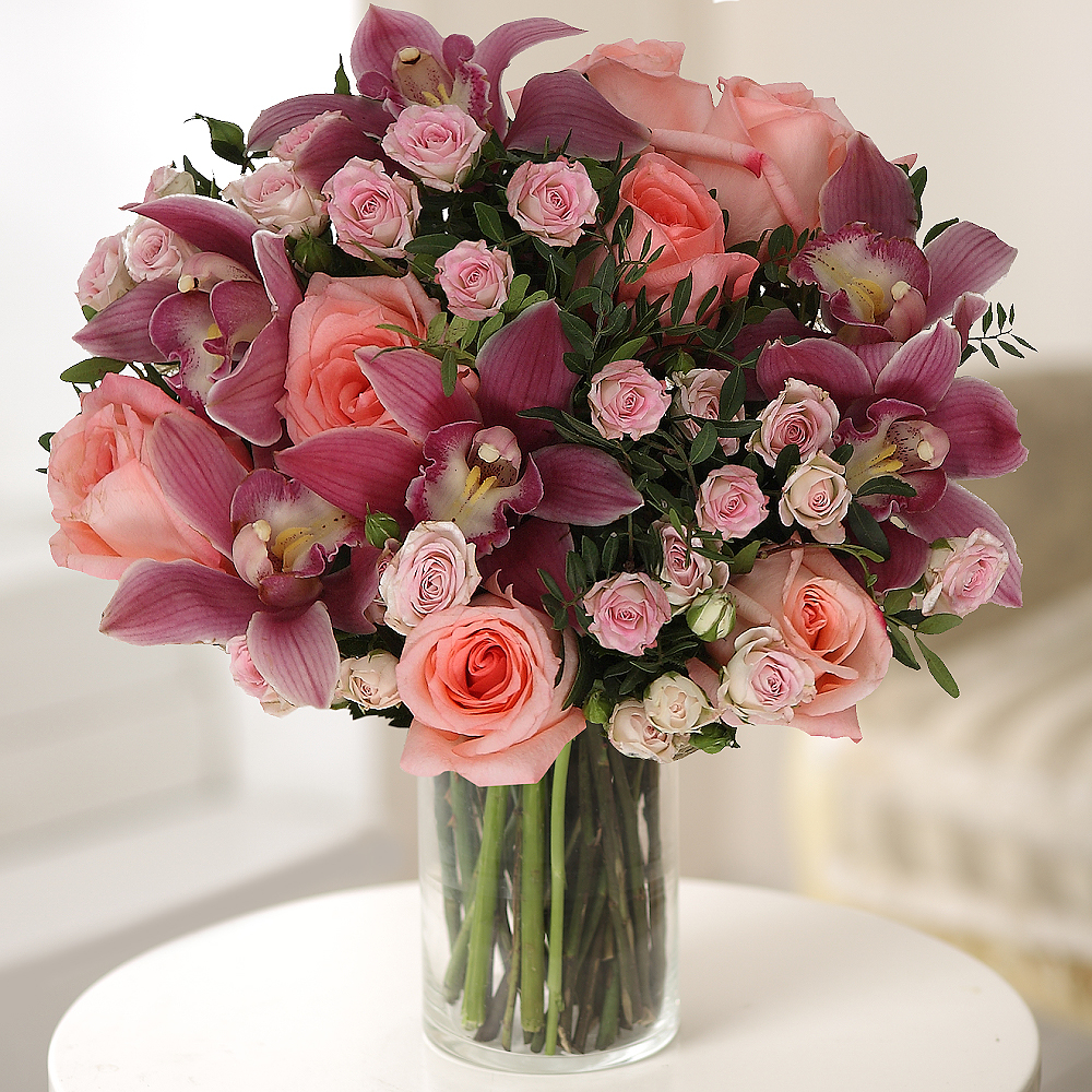 Mazzo 'Preferito: Orchidee Cymbidium e Rose'