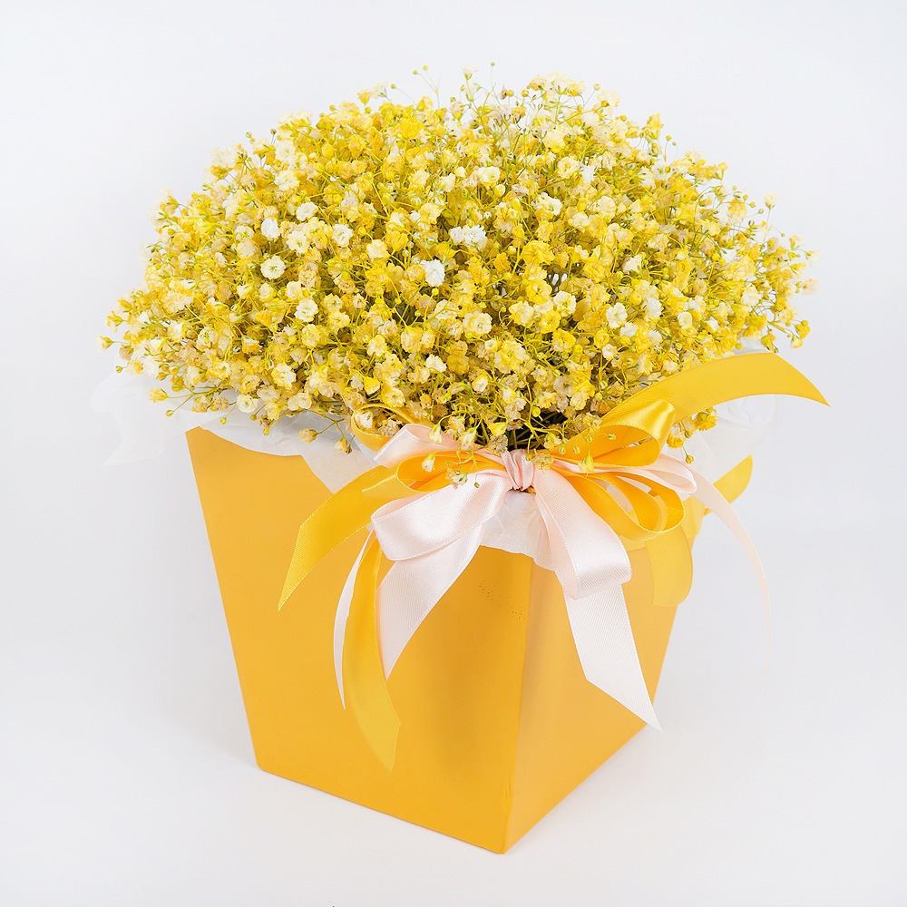 Scopri la magia dei gipsofili gialli nella composizione "Sabbie d'Oro"! Questi fiori delicati creeranno un'atmosfera di calore e accoglienza nella tua casa, ricordando i giorni di sole e le spiagge...