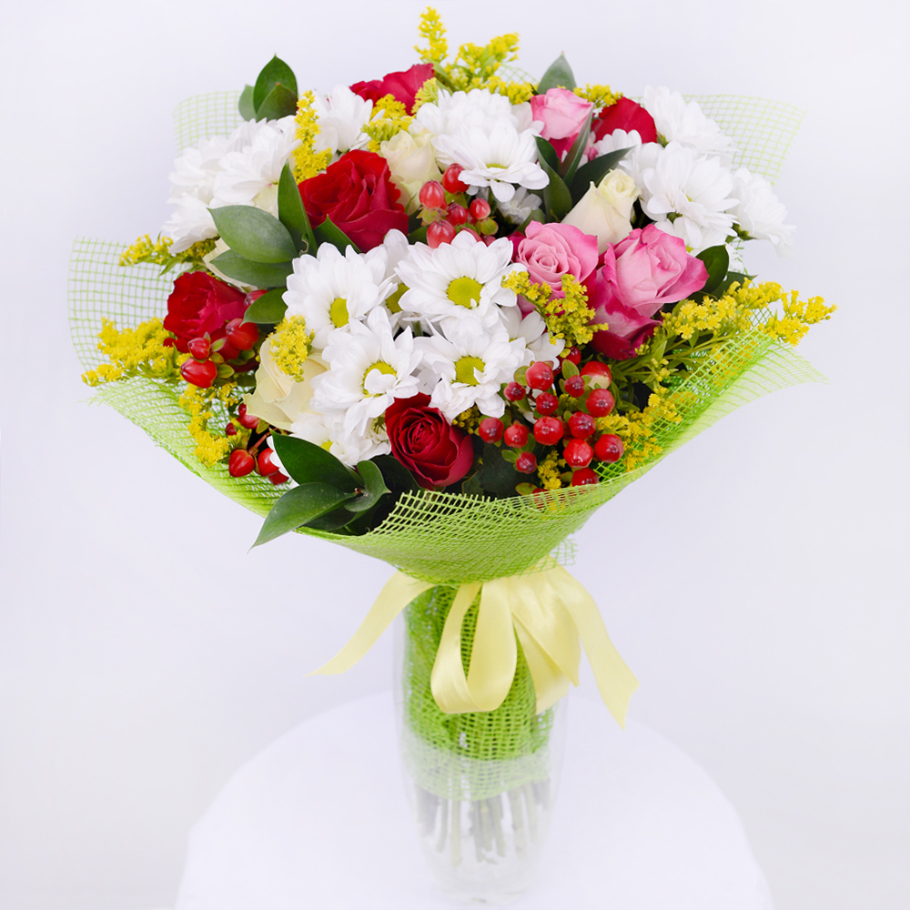 Inviare dei bellissimi fiori è un modo universale per illuminare la giornata di qualcuno, per congratularsi o semplicemente per rendere felice la persona amata. Questo lussuoso bouquet di impressionante luminosità e saturazione di colori darà al destinatario un buon umore e riempirà il suo cuore di gioia.