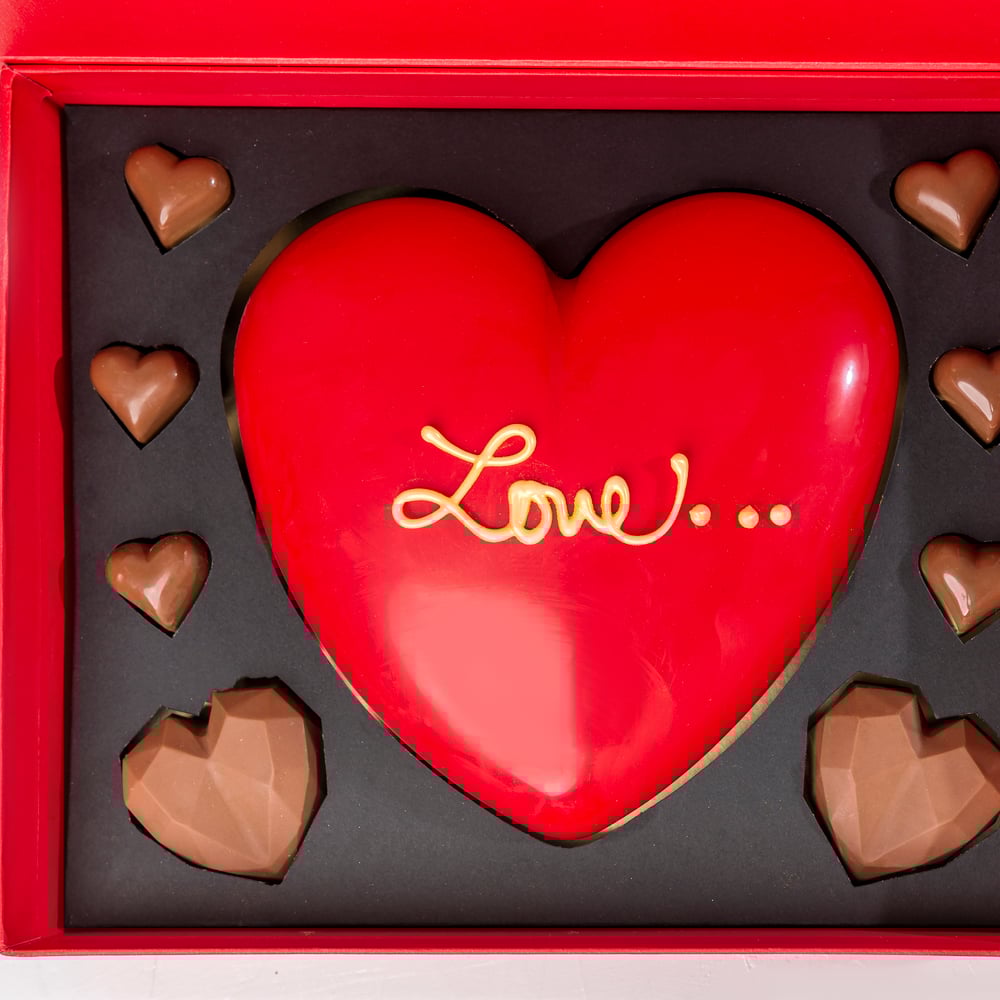 Il tuo regalo contiene: • 1 cuore schiacciato, circa 550 grammi • 2 mini cuori di cioccolato al latte belga • 6 piccoli cuori di cioccolato al latte belga • 10 tartufi di cioccolato al latte a...