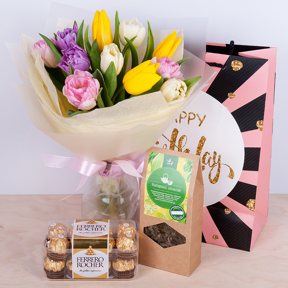 Tulipani, dolci al cioccolato e tè