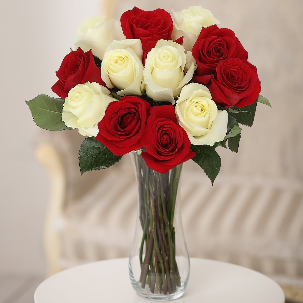 Un mazzo di 11 rose rosse e bianche