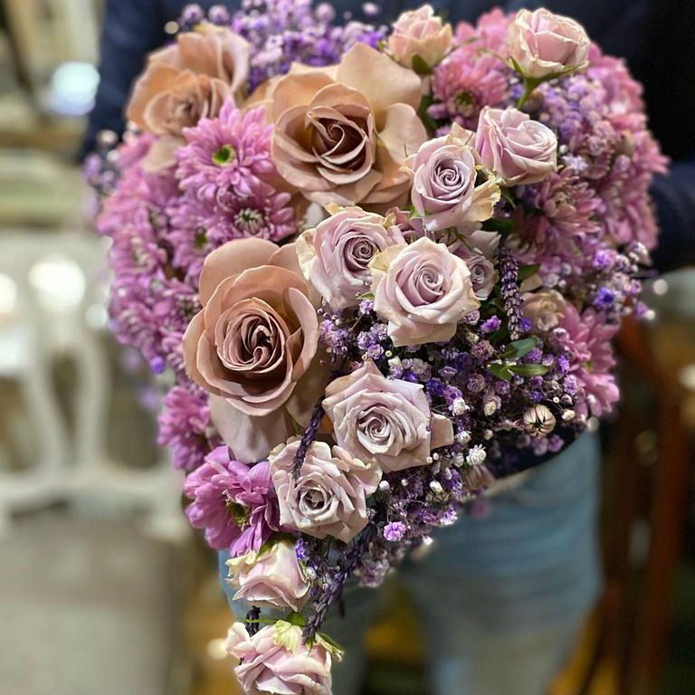 Cuore di fiore viola per i tuoi cari: Rosa, Ortensia, Crisantemo